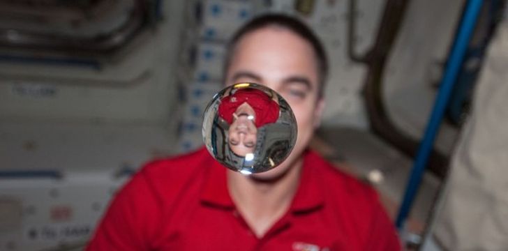 34. 우주 공간에서 액체는 스스로 원을 만듭니다.