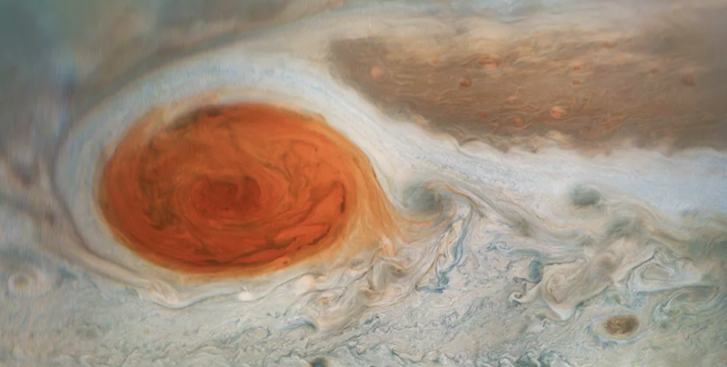 목성의 붉은 반점은 지구보다 3배나 더 큰 거대한 소용돌이 형태의 폭풍입니다.